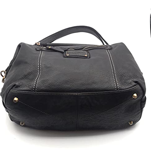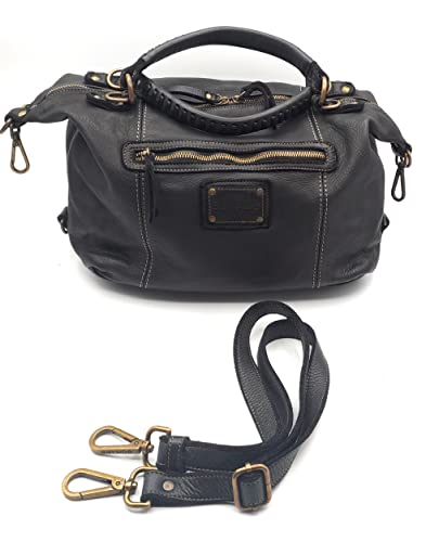 Bayside BS649 Borsa Donna Tracolla/a Mano Bauletto Vitello Vintage Nero -Made in Italy-