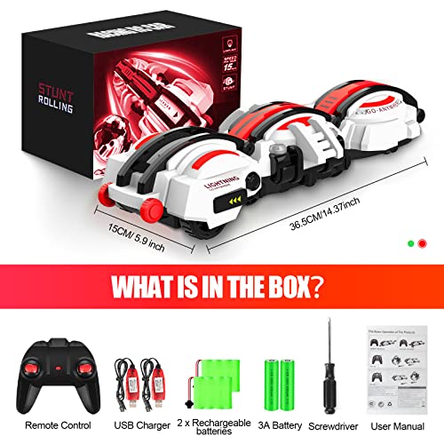BAZADER Macchina Telecomandata con Luce LED, Giochi Bambini 5 6 7 8 9 10 11 12 Anni, Auto RC Telecomando 360° Rotazione Acrobatica RC Stunt, Regalo Giocattoli per 6-12 Anni, Rosso