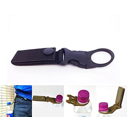 BazarAZ 1803 - [NERO] Gancio Porta Bottigliette d'acqua - con Fibbia a Gancio Clip e Velcro - Campeggio Escursioni Gita Viaggio- Alta Qualità