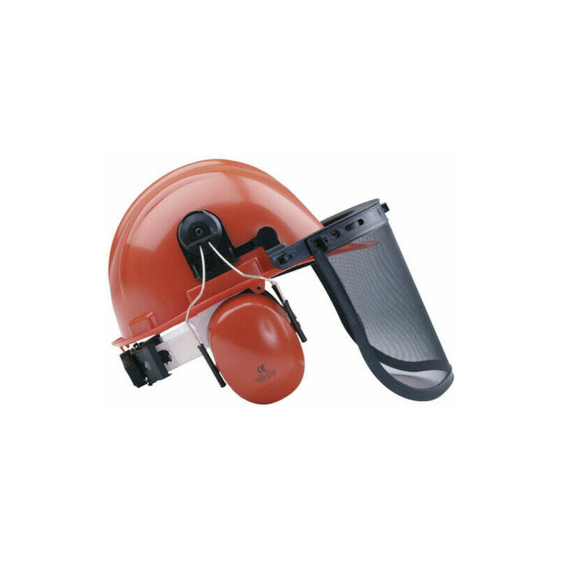 Per uso forestale Combinazione di elmetto protettivo arancione, porta-visiera ribaltabile con griglia e molto fine all'altezza degli occhi per una migliore visibilità e cuffie antirumori. Il casco è senza cinturino sottomento Peso ca. 600 g. Utilizzo: Combinazione di elmetto completo d'alta qualità per l'azienda forestale, la lavorazione dei sassi, cantonieri, ecc. Lo stesso può essere montato e smontato senza attrezzi e con molta facilità. La cinghia che circonda la nuca in basso fa sì che l'elmetto rimanga perfettamente in posizione anche se il portatore deve inchinarsi o guardare in alto. La griglia offre una visibilità nettamente migliore e più naturale delle griglie convenzionali. In caso di mancato utilizzo, le cuffie possono essere ribaltate in avanti o in dietro sulla calotta del casco.
