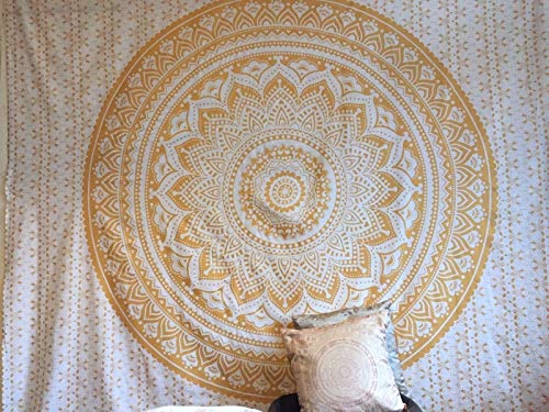 Bazzaree Copriletto Indiano Hippie Gypsy Bohemian Dorm Deco 100% Cotone Stampato a Mano Block Stampa Mandala Design Tapestry Wall Hanging Beach copriletto Venditore UK