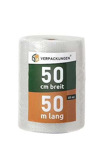 BB-Verpackungen 1 x Film a bolle d'aria 0,5 x 50 m (spesso 60 my reali, film di spedizione, film di imballaggio per proteggere oggetti sensibili, riciclabile) - set tra 1 e 9 rotoli