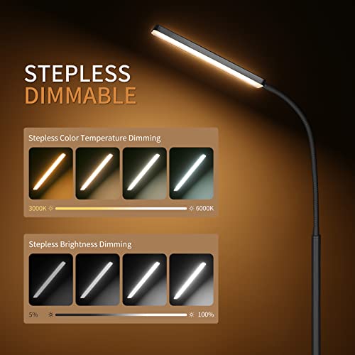 【4 temperature di colore e dimmer continuo】 La lampada da terra a LED dimmerabile può fornire quattro temperature di colore (3000k/4000k/5000k/6000k) e una regolazione continua della luminosità (5%-100%), puoi regolare liberamente le tue esigenze di illuminazione, funziona in il tuo ufficio, soggiorno, camera da letto o ovunque.