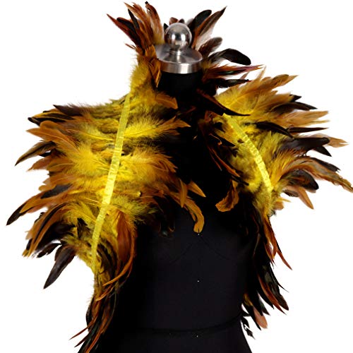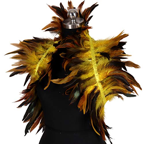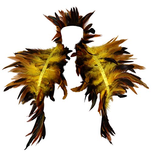 BBOHSS Donna Piume da Imbracatura Scialle Punk Vittoriano Vera piuma naturale Coprispalle Scialle Carnevale Costume da ballo gotico Accessori (Giallo chiaro A)