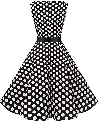 Bbonlinedress Women's Retro 1950s Vintage Swing Rockabilly Party Cocktail Dress Black White BDot M