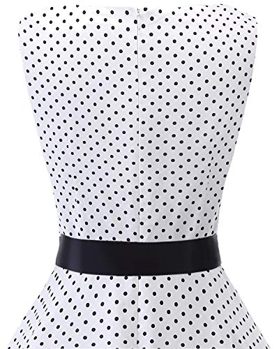 Bbonlinedress Women's Retro 1950s Vintage Swing Rockabilly Party Cocktail Dress White Small Black DOT M