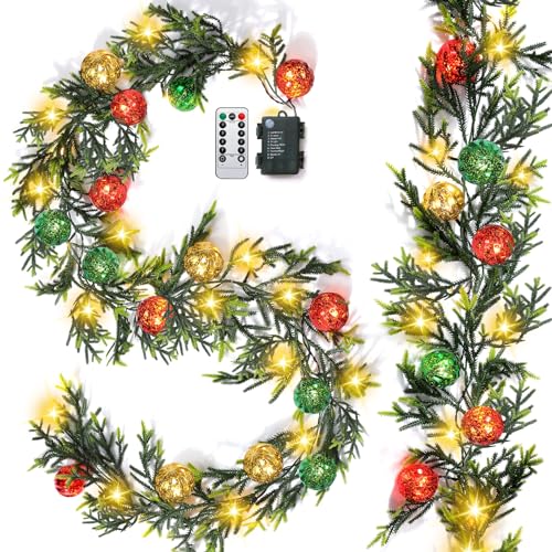 BBTO 2 Ghirlande Natalizie Pre-Illuminate con Luci Ghirlanda Palline Luminose di Natale, Ghirlanda Alimentata Batteria da 12 Piedi 20 LED a 8 modalità con Telecomando Timer per Scale (Multicolore)