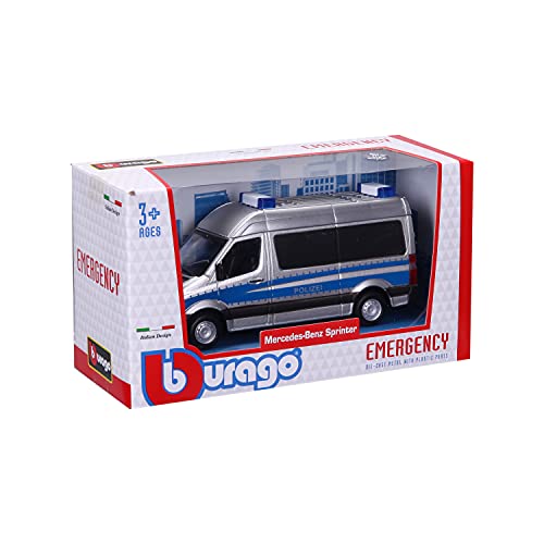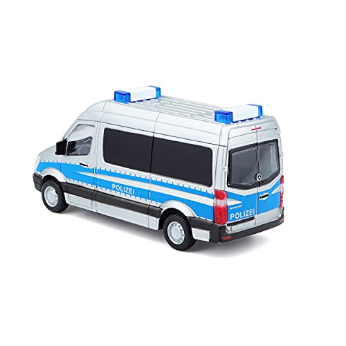 Bburago, Mercedes Sprinter Polizia, veicolo in scala 1:50, a partire dai 3 anni, circa 11,5 cm, argento/blu (18-32006P)