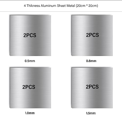 BBYPP 8 pezzi Piastra in alluminio 20cm x 20cm, 4 spessore Piastra di alluminio 0.5mm 0.8mm 1mm 1.5mm, Quadrato 6061 T6 Piastra di alluminio per diy artigianato
