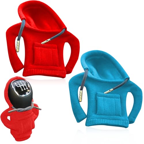 BCBF 2 PCS copri pomello cambio auto copri cambio auto felpa felpa copri cambio auto pomello cambio universale felpa con cappuccio del cambio universale(rosso+blu)