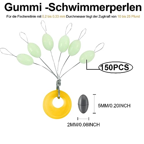 Tappi in gomma da pesca da 150 pezzi: il set di tappi da pesca include perline da pesca da 150 pezzi, realizzate in gomma, flessibili e resistenti, durevoli ed ecologiche.