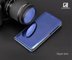 BCIT LG V30 Shell -Custodia Flip Mirror Cassa del Cuoio Genuino di Caso Specchio Bling 3D Protecter Shell di Lusso Pet LG V30 - Blu