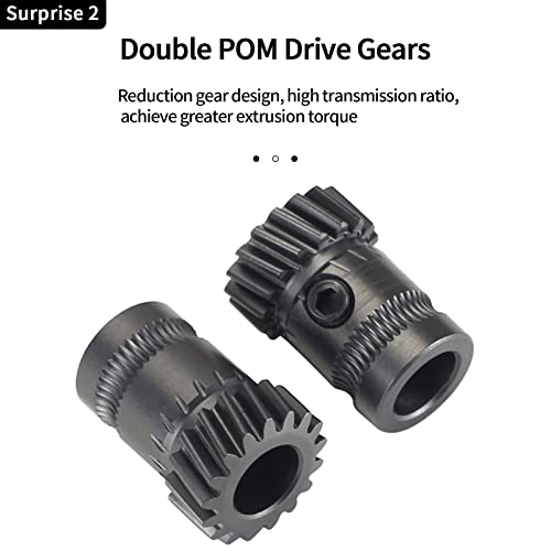 Dispone di un design del cambio 5:1 per fornire coppia e allo stesso tempo essere praticamente silenzioso. Per ottenere i migliori risultati, è necessario eseguire il proprio tuning. È inoltre necessario modificare il valore del passo dell'asse E dell'estrusore, ad esempio: il valore del passo dell'asse E di Ender 3 è 691;