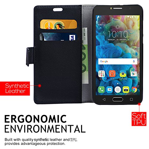 Bdeals Luxury Portafoglio in Bookstyle Protettiva Custodia in Pelle per Alcatel Pop 4S (5.5 Pollici) Flip Cover Caso, Nero