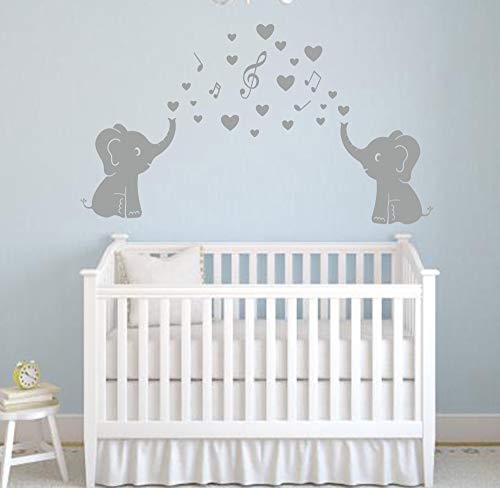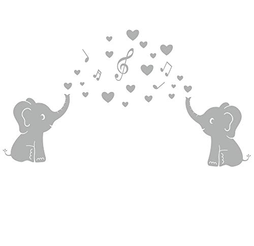 BDECOLL Tre Elefante Elegante Wall Decal con Love Language Nursery Baby Boy Monogram Camera per Bambini (Bianco)