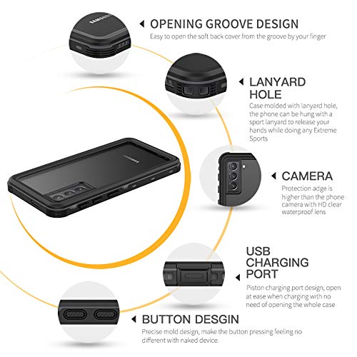 【Cover Impermeabile IP68】 Design per Samsung S21 Plus. Perfettamente sigillato, standard impermeabile IP68, sicuro in acqua sotto 10 piedi, anche dopo 1000 volte di test di utilizzo per un'ora. Completamente sigillato e trasparente, ti garantisce di catturare momenti meravigliosi sempre e ovunque.