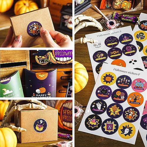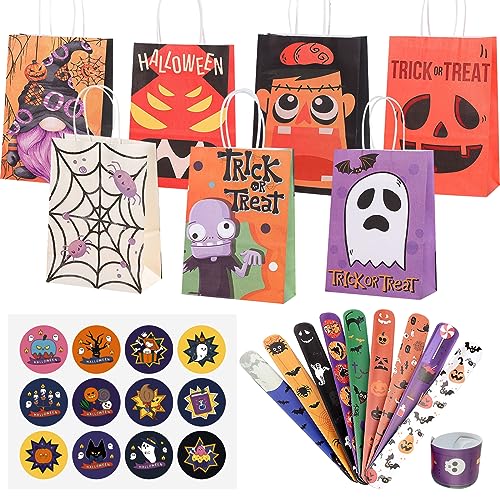 BDSHUNBF 7 Pezzi Sacchetti Halloween Caramelle, con Adesivi e Cerchio di Applausi, Sacchetti Regalo di Carta, Sacchetti Regalo di Halloween, Sacchetti Per Feste di Halloween con Manico per Regali