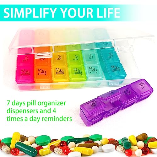 【Capacità Davvero Grande】Ogni scomparto può contenere circa 10 pillole di olio di pesce o grandi compresse vitaminiche, 7 colori sono usati per distinguere 7 giorni a settimana, ogni scatola staccabile ha 4 scomparti disponibili, puoi mettere abbastanza integratori o prescrizioni nelle loro pillole.