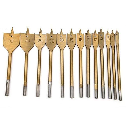 BE-TOOL - Punta piatta per legno, 6 punte piatte per trapano in titanio dorato, lavorazione del legno a tre punte per trapani elettrici, ricaricabile, 35 mm