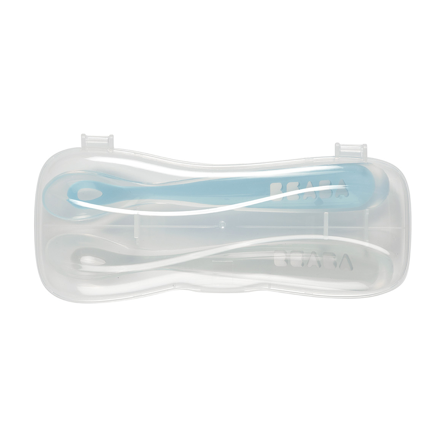 Cucchiaio ergonomico per l'apprendimento precoce. Il cucchiaio ha una punta in silicone ultra-morbida, quindi soprattutto il passaggio dal ciuccio al cucchiaio è più facile. La lunghezza del manico è ideale per tutti i tipi di pentole. Dettagli del prodotto: Manico lungo ed ergonomico progettato per adattarsi alla mano di un adulto Tappo e corpo in silicone: pulizia facile Cucchiaio morbido: nessun rischio di lesioni gengivali Scatola per il trasporto Lavabile sia a mano che in lavastoviglie Set composto da 2 cucchiai Colori: blu, grigio