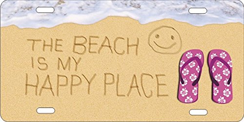 Il Beach è my Happy Place smiley face in the sand infradito Personalized Custom novelty vanity-Portatarga anteriore