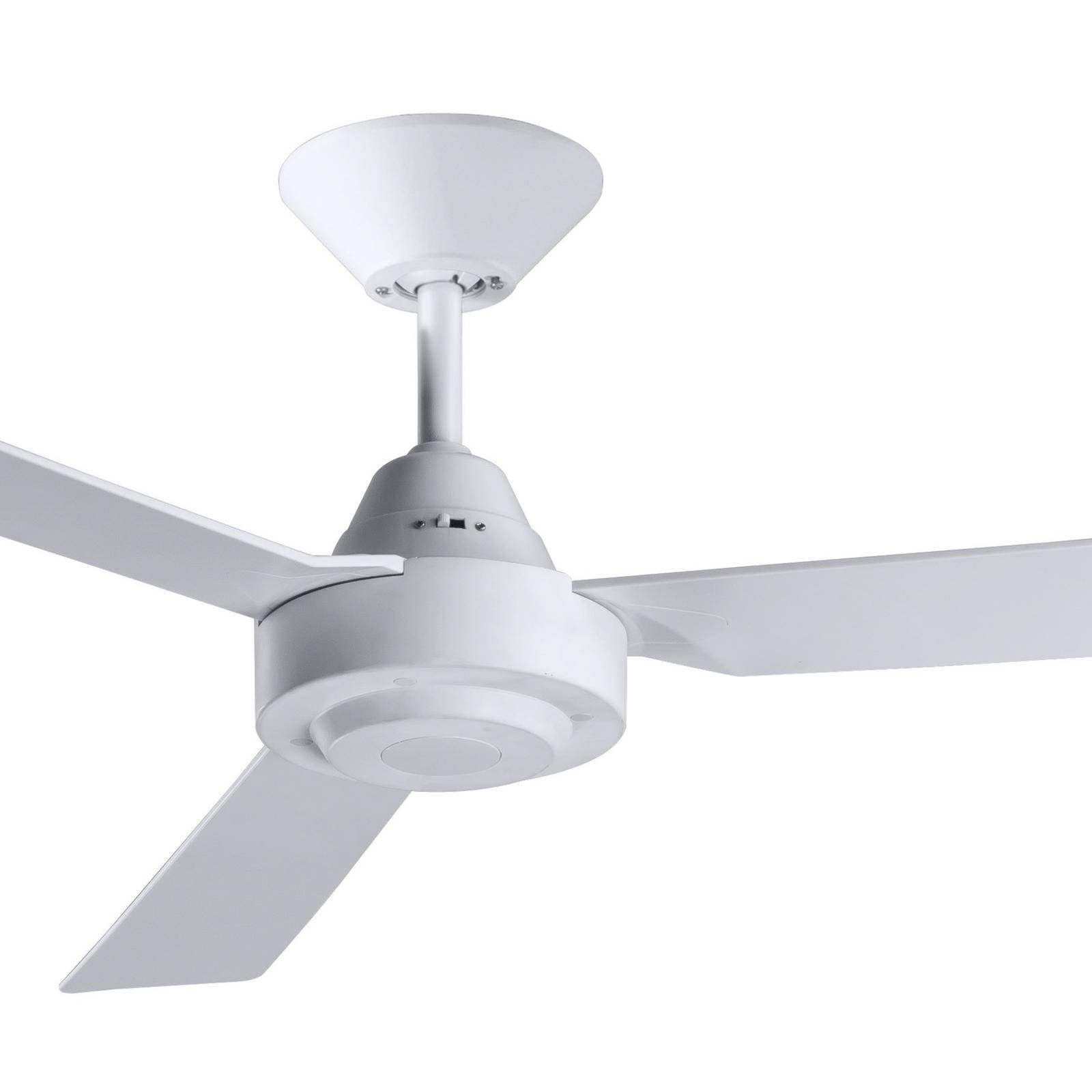 Ventilatore da soffitto Bayside Calypso con motore CA, interruttore a parete inclusoIl ventilatore da soffitto Bayside Calypso può essere montato anche su soffitti inclinati con un angolo massimo di 18 gradi. Un'asta di prolunga (90 cm) può essere acquistata separatamente come accessorio, in modo da poterlo utilizzare anche in stanze con soffitti alti. La fornitura comprende un interruttore a parete con cui è possibile regolare la velocità del motore CA. Il motore CA può funzionare a tre livelli di velocità, regolati dall'interruttore a parete in dotazione. Il Bayside Calypso può anche essere acceso e spento tramite questo interruttore. In alternativa, è possibile installare un telecomando (vedere accessori). La funzione estiva e invernale può essere attivata direttamente sull'alloggiamento. In modalità invernale (ritorno), le ante ruotano in senso antiorario. In questo modo l'aria riscaldata dal riscaldamento viene reindirizzata nell'amb