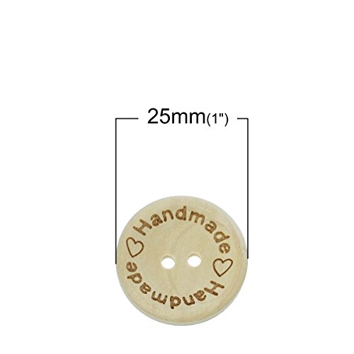 The Bead and Button Box Bottoni in legno con scritta "Hand Made", 10 pezzi, 25 mm Per cucito, borse, cuscini, lavori creativi e scrapbooking