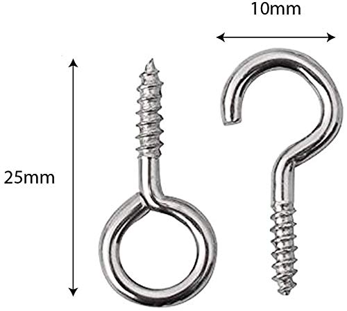 Ganci e anelli in metallo robusto per l'uso con cavi flessibili per tende, aspetto cromato. 20 occhielli e 20 ganci per confezione
