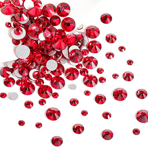 Beadsland Strass Make Up,8 Dimensioni 2500pcs Rosso Flatback Strass Occhio Unghie Nail Art,Strass per Scarpe con Pinzette e Matita di Cera,Siam,SS4-SS30