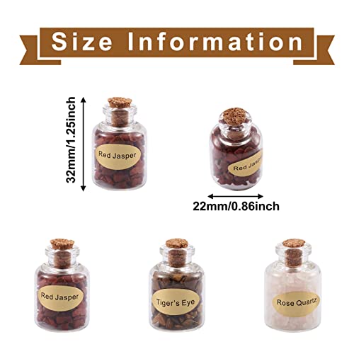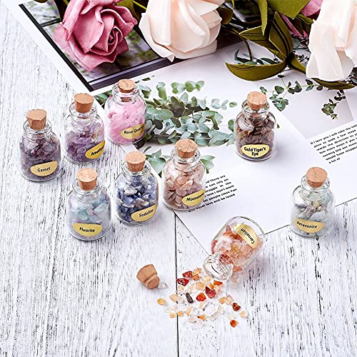 Beadthoven 9pcs Mini Gemstone Wishing Bottles Cristallo naturale Quarzo Chakra Reiki Chip schiacciato Set di pietre per la guarigione Chakra di bilanciamento Wicca Wish Creazione di gioielli