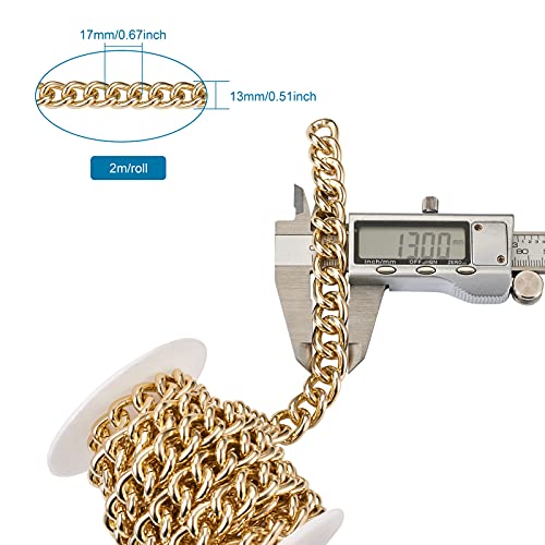 Beadthoven - Catene a maglia barbazzale in alluminio, 13 x 17 mm, dorate, intrecciate, con bobina, catena barbazzale non saldata, per la creazione di gioielli e la decorazione di borse