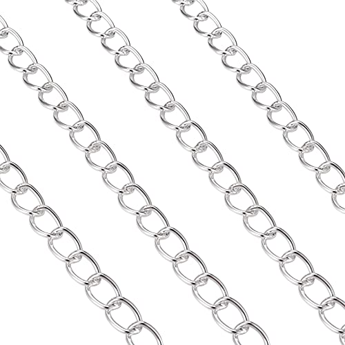 Beadthoven - Catene a maglia barbazzale in alluminio, placcato argento, con rocchetto da 13 x 18 mm, per gioielli