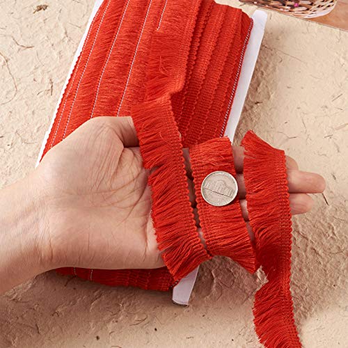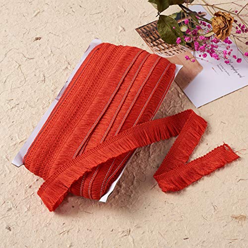 Beadthoven, nastro con frange e nappe in fibra, larghezza 25 mm x larghezza 25 m, per ricamo, abbigliamento, tende, nozze, abiti latini e di scena, paralumi, decorazioni per la casa, rosso scuro