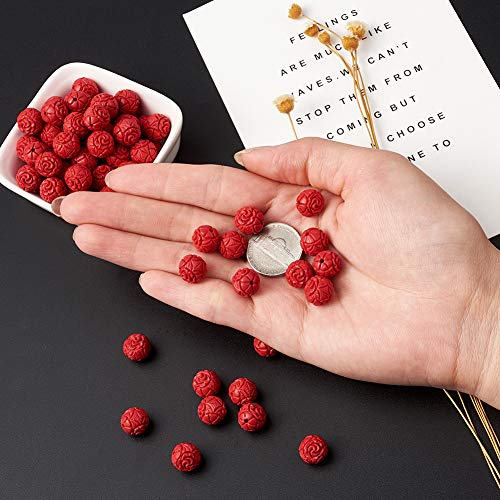 Beadthoven - 100 perline rosse rotonde da 10 mm, con fiore intagliato, per preghiera, per Buddha Mala, foro da 1-2 mm