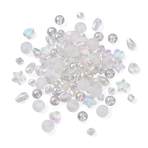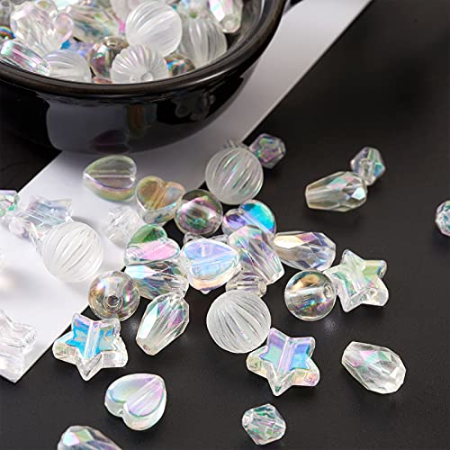 Beadthoven - 600 perline trasparenti acriliche a forma di cuore e stella rotonda bicono a goccia in cristallo trasparente placcato iridescente per la creazione di gioielli e braccialetti