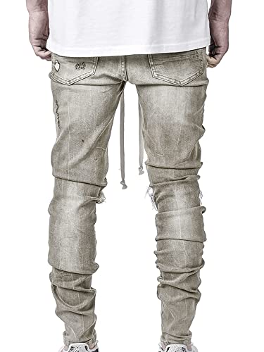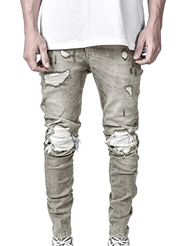BEAFNKSG Pantaloni da Uomo in Denim Skinny Strappati Jeans Elasticizzati Casual con Gamba Affusolata con Fori Strappati (Grey, Small)