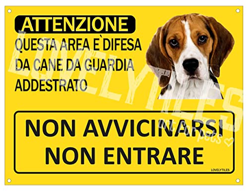 BEAGLE CARTELLO TARGA ATTENZIONE QUESTA AREA è DIFESA DA CANE DA GUARDIA ADDESTRATO NON AVVICINARSI NON ENTRARE PVC GIALLA