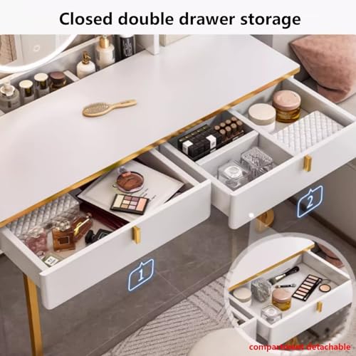Beaka Toeletta Da Trucco Con Specchio E Luci LED Postazione Trucco Bianco Con Specchiera Tavolo Cosmetici Con 2 Cassetti,scrivania Make Up Per Mobili Da Camera Da Letto (Color: Without stool)