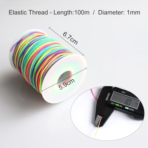 FILETTO ELASTICO - Diametro:1mm, Lunghezza:100m, Colore: Arcobaleno (colorato). Questo filo elastico è perfetto per bracciali, perline, ecc.