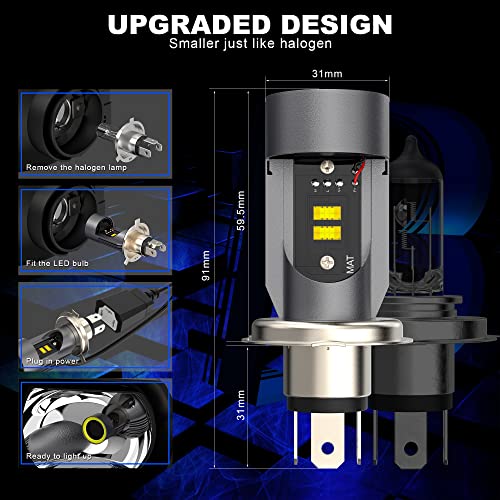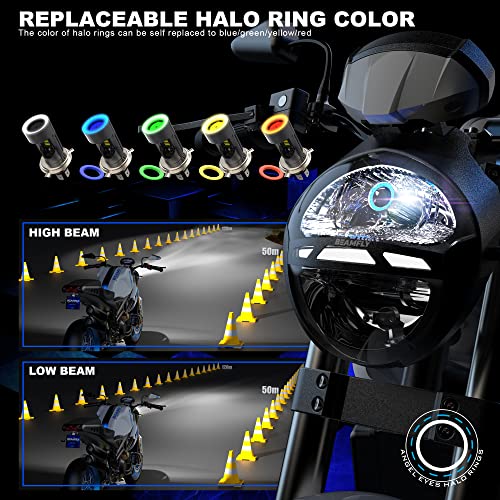 BEAMFLY H4 LED Lampadina Moto con Anello Aureola, Fari Biluce Lampada Occhi d'angelo Scooter 6500LM HB2 9003 6000K Bianco
