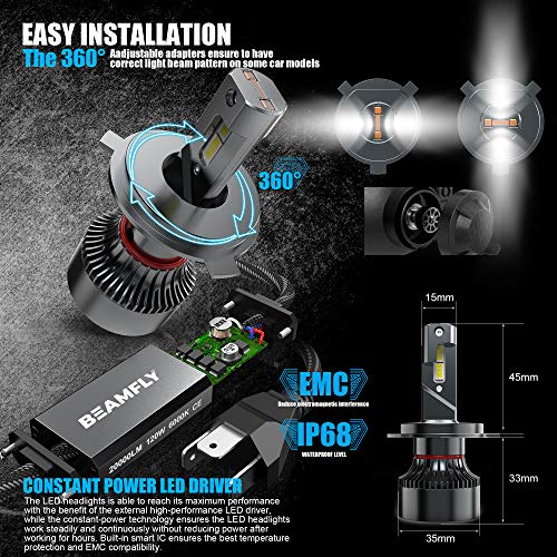 BEAMFLY 1 Pezzo H4 HB2 9003 LED 10000LM Biluce Lampadina Fari Auto o Moto 60W 12V 6000K Bianco