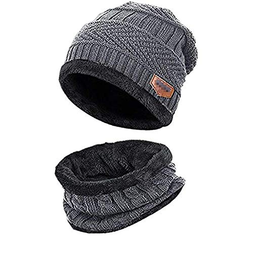 Beanie con Sciarpa,Sciarpa Cappello Caldo Beanie Termico Sciarpa Circle Hat Sciarpa per cappello lavorato a maglia uomo donna (nero, grigio)