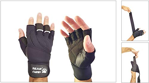 BEAR GRIP - guanti per sollevamento pesi con fasce di supporto per il polso (Small)