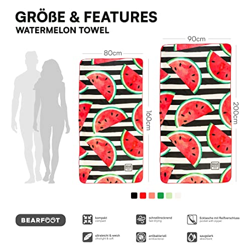 BEARFOOT Asciugamano in Microfibra con Tasca | Asciugamani ad Asciugatura Rapida: Telo Sauna, Telo Mare XXL, Telo da Bagno Grande, Telo da Viaggio | Viaggio, Spiaggia, Sauna (200x90, Watermelon)