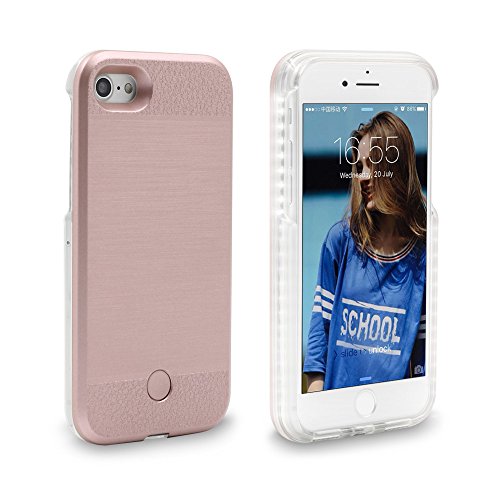 Bearshifu LED si illumina copertura posteriore illuminata per la cassa del cellulare Selfie per iPhone 7 (Oro Rosa)