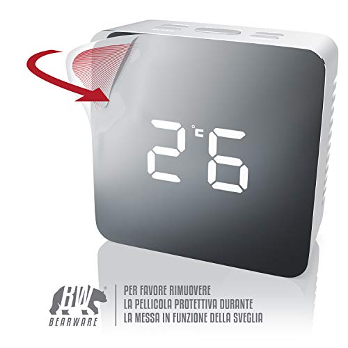 Bearware - Sveglia LED Digitale - Sveglia da Viaggio con visualizzazione della Temperatura - Sveglia a Specchio - Visualizzazione della Temperatura Interna - Funzione Snooze