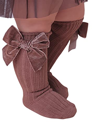 Design: calze al ginocchio per neonati per neonate. La calza del tubo del bambino è progettata con una graziosa decorazione a fiocco in velluto. Maglia a trecce a coste e la maglia è molto fine, cuciture senza cuciture. La lunghezza va dalla punta al ginocchio, che copre l'intera gamba per mantenere gamba calda, frangivento in inverno. Il design adorabile fa sembrare la tua bambina una principessa.