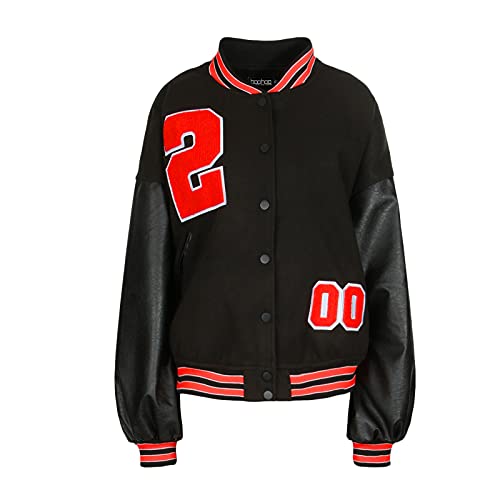 Beauace Giacca da Baseball Oversize da Donna Giacca da Donna Ricamata a Maniche Lunghe in Pelle di Moda Giacca Oversize Manica Lunga Senza Cappuccio Boyfriend Giacca Larga Y2K (Nero B, S)