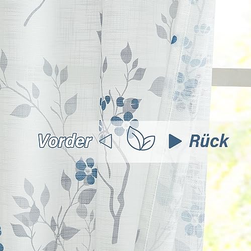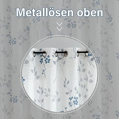 Beauoop 2 Pezzi Tende Trasparenti con Foglie, 127 cm di Larghezza,Tenda moderna,Motivo Floreale con Foglie, per Camera da Letto, Soggiorno, Balcone Tessuto in Lino (127 x 175 cm, Blu/Grigio)