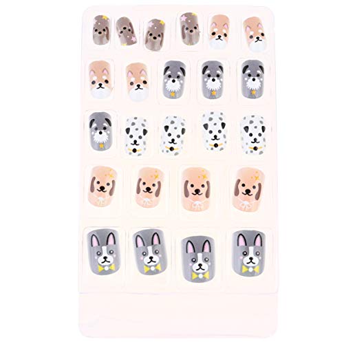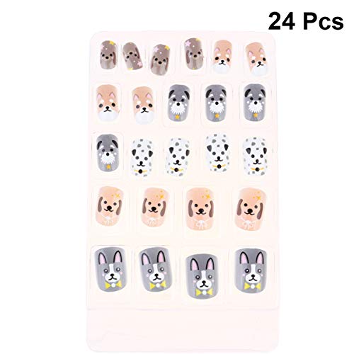Beaupretty 24Pcs Bambini Unghie Finte Pre-Colla Copertura Completa Caramelle Animali Punte Unghie Finte Punte per Unghie Strumento per Manicure